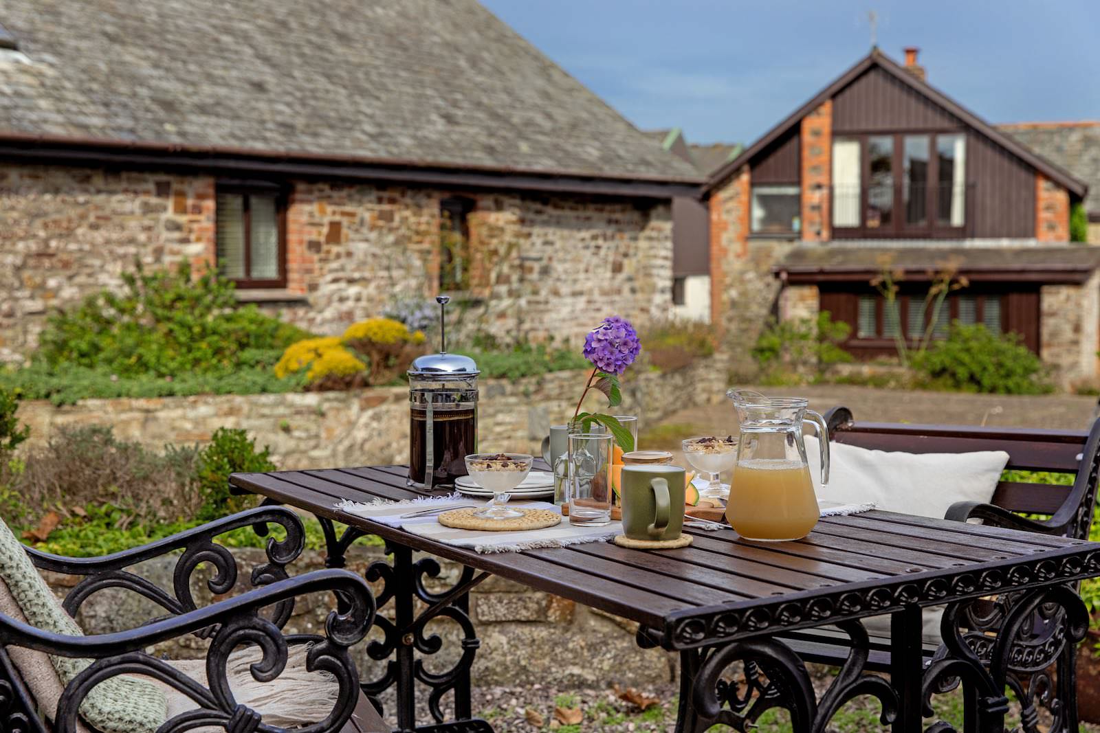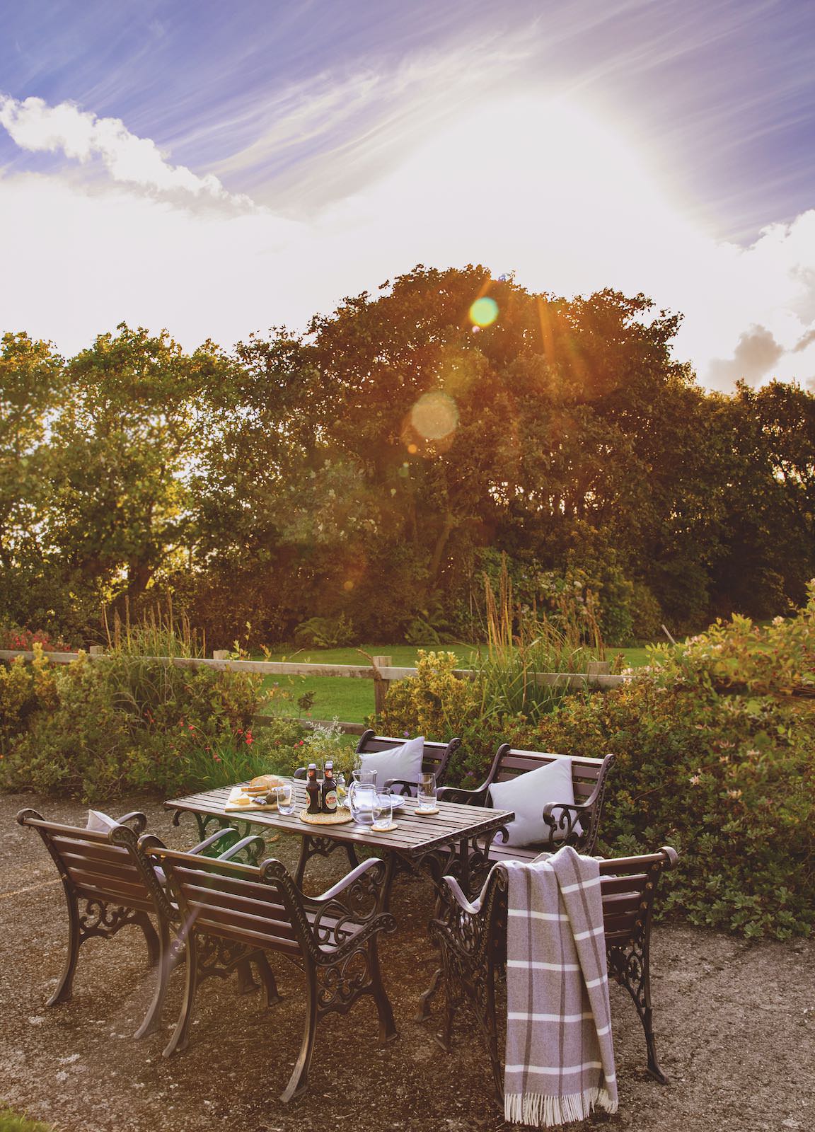 - Outside each cottage a designated seating area with wrought iron and pine table and chairs;